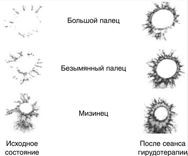 «…По мнению Г.С. Исаханяна, прокусывая кожные покровы своей жертвы, пиявка вызывает ответ организма в виде местной, сегментарной и общей реакций. Местная реакция обусловлена рефлекторным и общим вегетативным ответом и выражается в изменении кровенаполнения участка кожи, ее температуры, чувствительности, величины электрического потенциала и сопротивления. Кроме того, укус является источником длительной импульсации в нервные центры. Сегментарная реакция обусловлена нервными импульсами, вызванными раздражением точки, которые, распространяясь по афферентным волокнам к спинному мозгу, возвращаются к соматическим нервам и мышцам, а по вегетативным волокнам идут к внутренним органам, сосудам, различным железам. Сегментарная реакция, являющаяся рефлекторным ответом организма в пределах одного сегмента, выражается в нормализации функционального состояния тех или иных органов. Общая генерализованная реакция возникает в результате афферентной импульсации, идущей по спинномозговым и вегетативным путям с периферии в корково-подкорковые структуры мозга (ретикулярную формацию, гипоталамус, таламус, гиппокамп и др.), меняя их функциональное состояние. Это влечет за собой нормализацию и перебалансировку содержания гормонов и других биологически активных веществ в организме» (Журнал «Медицина неотложных состояний» № 7–8 (46–47) 2012).